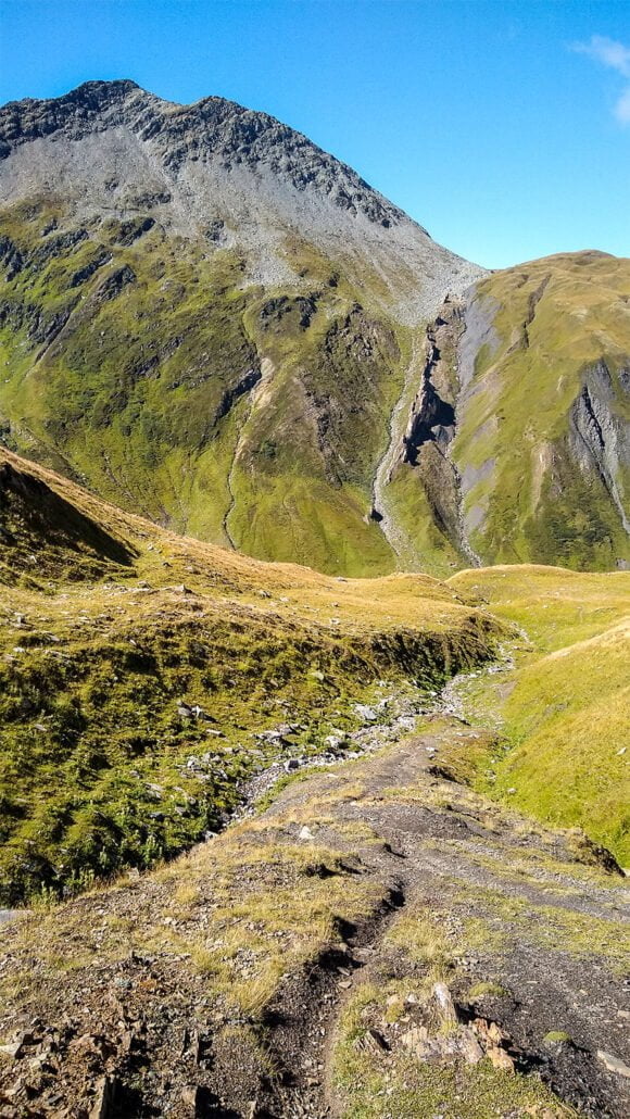 De weg is ondertussen overgestoken waar het wandelpad verder gaat. Het is behoorlijk druk op de pas weg met auto’s en motoren: gelukkig hoef je daar niet langs te lopen